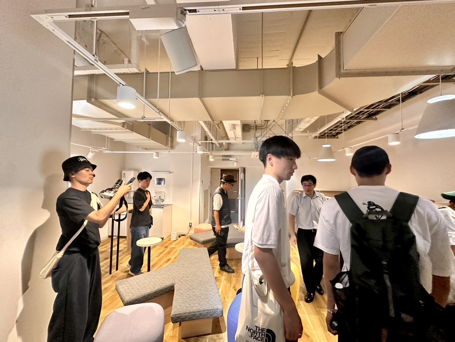 こちらの写真は、改修した職員の休憩スペースを見学している様子です。