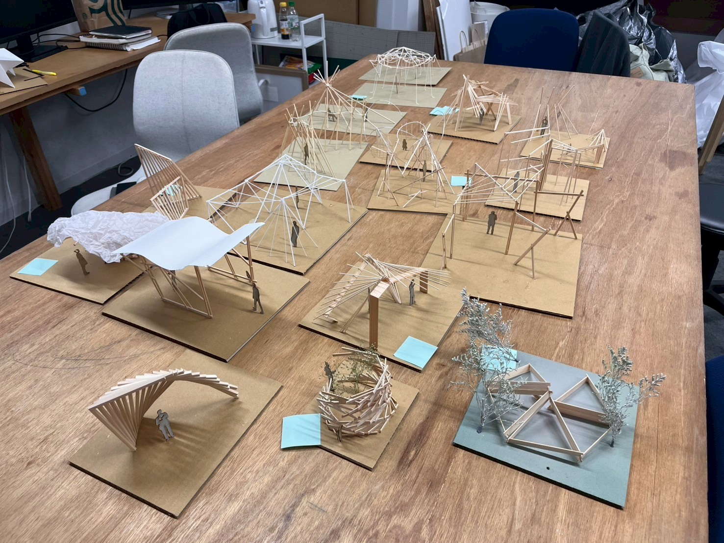 B4, M1各々で1/30の模型を4つずつ作成し発表しました。