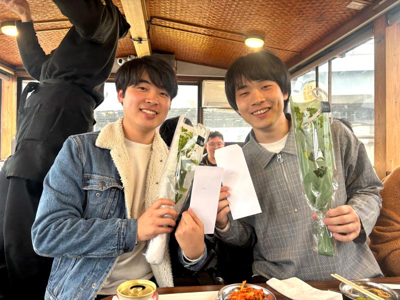 屋形船でのイベントその②で、2025年度関東支部研の研究発表で各種受賞した学生たちへお花の贈呈と、副賞で展覧会のチケット贈呈です!おめでとうございます。