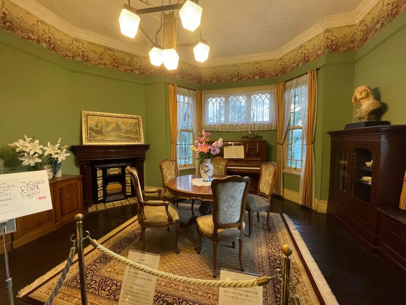 1903年にアメリカ総領事ハンター・シャープ氏の邸宅として建築された。1944年に元神戸電鉄社長の住宅となり、1980年に重要文化財に指定された。1987年からの修理で下見板張りの外壁は建設当時の淡いグリーン色に復元され、「萌黄の館」と呼ばれるようになる。1995年の阪神淡路大震災では大きな被害を受けたが、約1年半をかけて改修された。