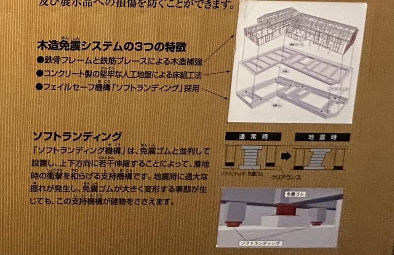1995年の阪神・淡路大震災では全壊の被害を受けたが、その後、画期的な「木造免震システム」を導入して再建された。このシステムは、以下の3つの仕組みによって構成されている。