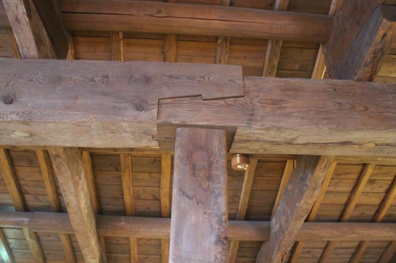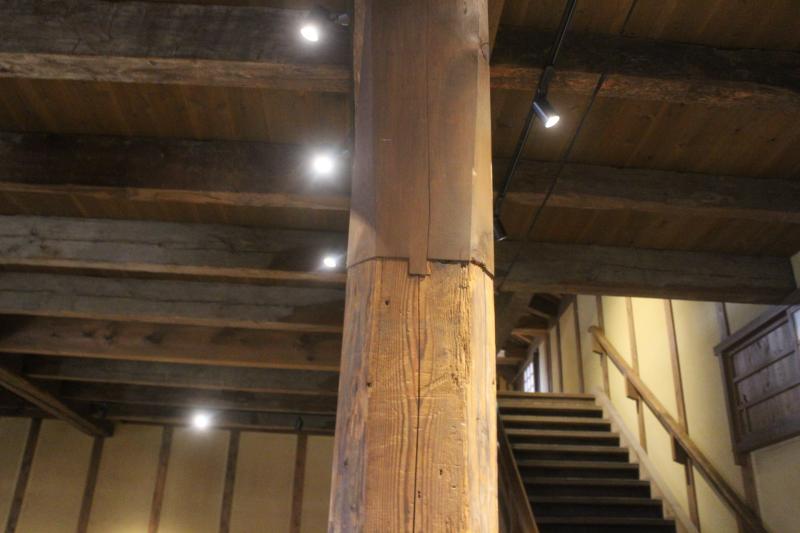 阪神・淡路大震災後の再建において、本建物には木造免震システムが導入されている。柱と桁の接合部付近や柱の高い位置での、通常は応力が集中するため回避される位置での根継ぎ(高根継)が確認された。本来であれば構造的な弱点となり得るこうした修復箇所が存在することは、逆に言えば、免震システムの導入によって建物への地震動が大幅に低減されているからこそ許容されたと考えられる。歴史的部材を最大限残すための継手を、現代技術である免震の強さが補完しているという、新旧技術の共存関係を強く感じ取ることができた。