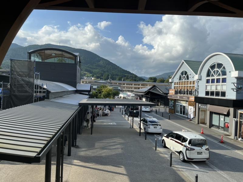 また、駅舎のすぐ隣に建てられた、坂茂氏設計の観光案内所からは、由布院駅舎の側面が見られる。側面からは、この駅舎の象徴的な部分である中央の吹き抜け部分を横から覗くことが出来る。