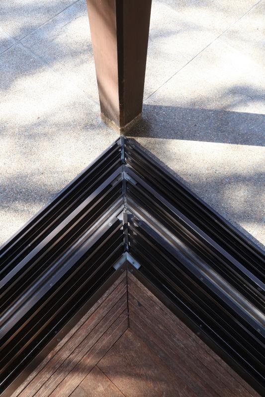 また、現代の生活の必需品である空調設備を伝統衣装に取り込むために、地袋の中に空調機を納めていた。地袋の建具をルーバー状にすることで、機能面を維持しつつ、意匠を損ねない工夫が見えた。