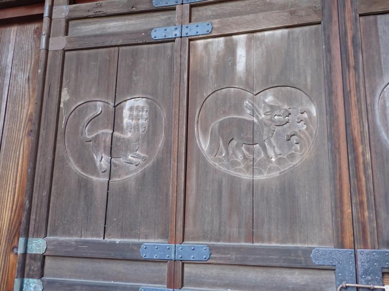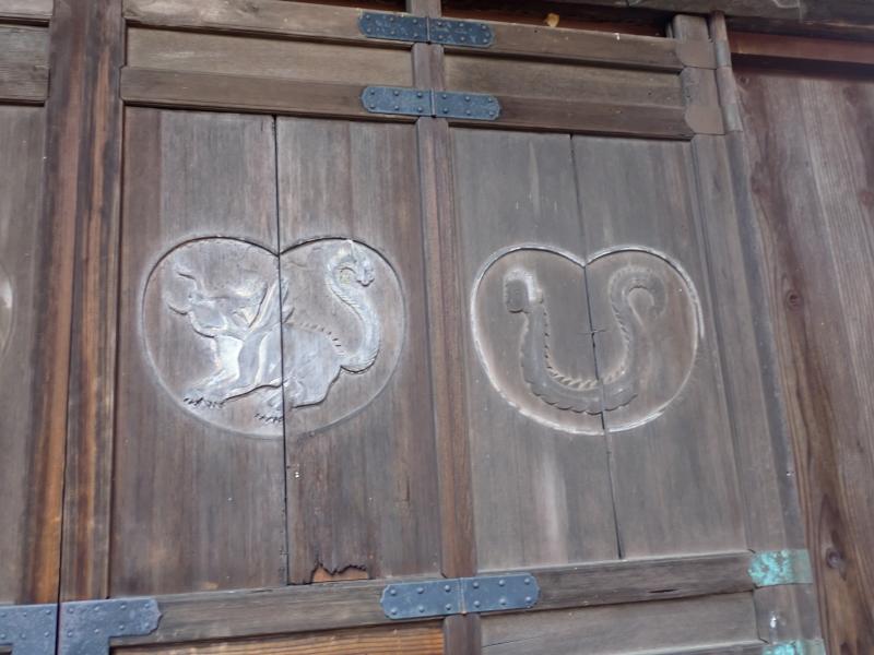 扉には白虎、玄武、朱雀、青龍の四神が描かれるが白虎と青龍は顔が人面となっていた。