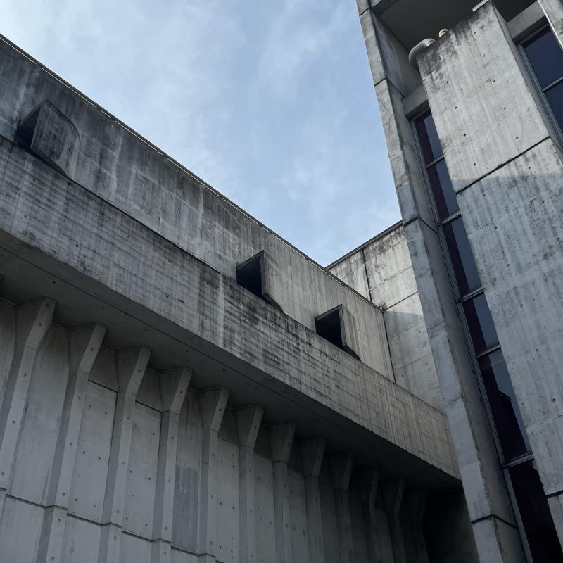 2階には「磯崎新建築展」の常設展示があり、磯崎氏の代表的な作品や図面、模型、映像などがまとめられていた。海外プロジェクトを含めた膨大な仕事を一望でき、特に学生時代から国際的に活躍するまでの過程を示す資料が充実しており、建築家としての思想が時代とともに変化し続けてきたことがよく分かった。単なる設計者ではなく、批評家・思想家としての側面を持つ磯崎新を知ることができた点も貴重であった。
