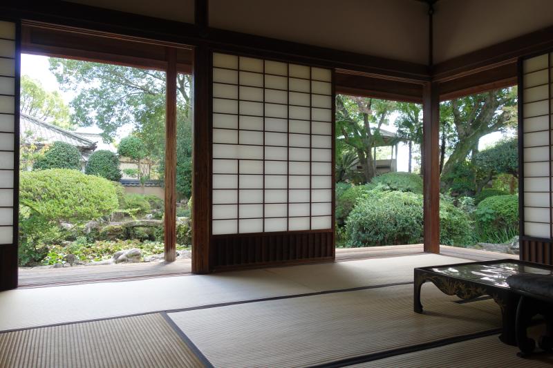 母屋の部屋は公私を区別されており、来客用座敷と次の間は白壁で高麗緑(古来より大切な場所で使われており使う場所に制限があるなど、身分の違いを現していた)の畳。