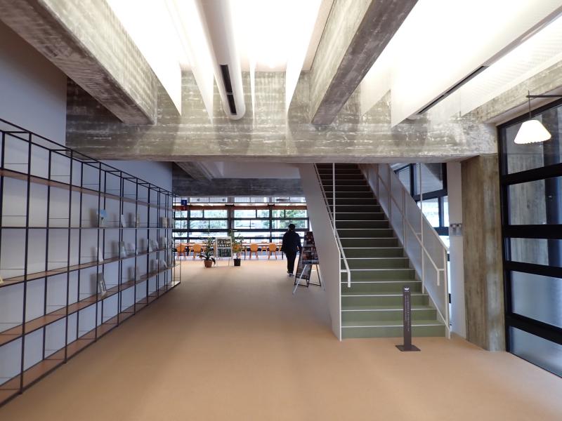 内部空間は現在、図書館やカフェを併設する観光・文化の複合施設として活用されている。市庁舎として市民に利用されてきた履歴と、坂倉建築としての知名度を最大限に生かしており、コンバージョンの好例として非常に理にかなっていると感じた。