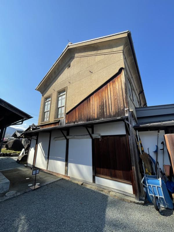 和洋折衷の木造建築である。1階が土間、ザシキの構成で2階は展示施設として利活用されていた。レンガ造の醸造所や石造りの貯蔵庫など当時の技術を取り入れた遺構が特徴的であった。主屋妻面の壁にはかつて併設していた鉄骨造の蔵の屋根面でき、撤去された痕跡と歴史が確認できる。また、2階に上がる階段の壁面には垂木懸けが確認できたことから増築のものであると分かる。かつて使われていた階段は「がらり戸」の形式で、スライドして開ける天井で1階と2階をふさいでいる。この形式は山梨県で見られる特徴であるとされる。