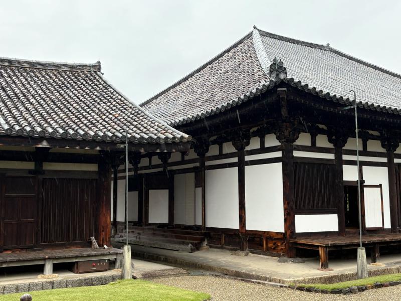 とくに印象的であったのは屋根である。本堂の西側流れと、隣接する禅室の一部に行基葺が帯状に残され、赤褐色の古瓦が新しい瓦と明確に区別して見えるようになっていた。説明では、そのうち約200枚が飛鳥時代の瓦で現役で使われているとのことで、日本最古級の瓦が使用されている点は、感動的であった。