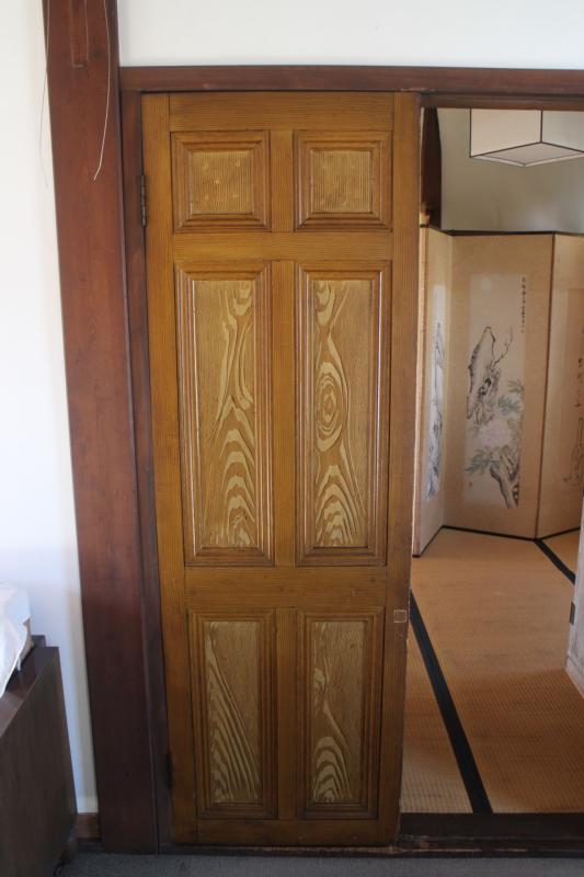 また、扉などの建具に絵の具で木目を描く「木目塗り」が施されており、木材そのままの美しさを重んじる日本の伝統と木目をペンキなどで塗る西洋の様式という、「木材に対する解釈や美意識の違い」から生み出された表現手法である。まさに、見様見真似で大工が西洋建築を受容しようとした背景が伺える。