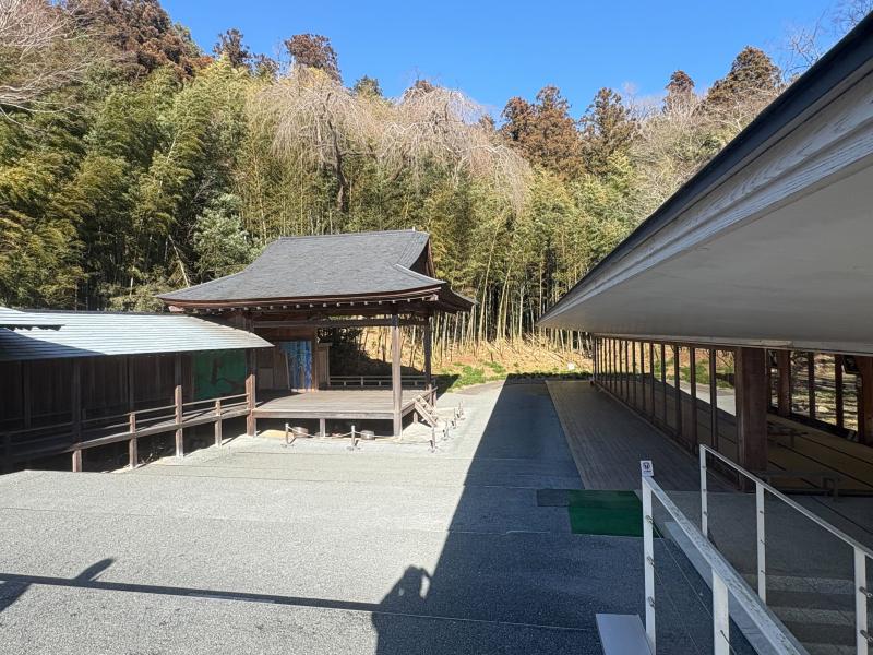 また、観客席からの視線に配慮し、隣接する展示室の屋根や観客席の高さが計画的に調整されており、客席側からは展示室の屋根面が視界に入らないように設計されている。これにより、能舞台を囲む風景の連続性が保たれ、上演空間への集中を妨げない構成となっている。