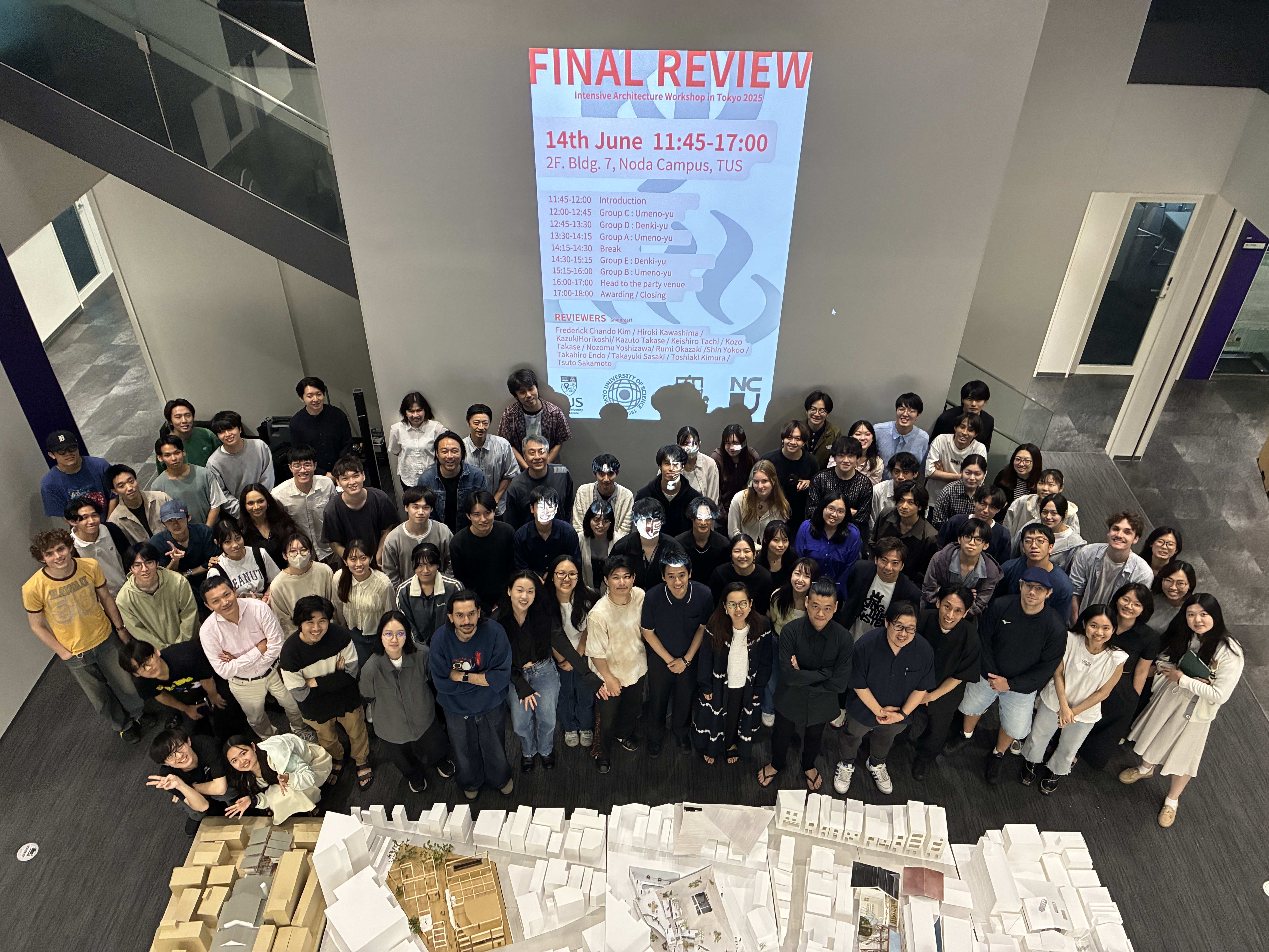 2025年6月5日から15日にかけて、芝浦工業大学豊洲キャンパスおよび東京理科大学野田キャンパスにおいてTokyo Re-Design Workshopを開催した。本ワークショップは2024年に続く2回目の開催である。芝浦工業大学、シンガポール国立大学、東京理科大学、名古屋市立大学から、建築・環境・構造といった異なる分野の65名の学生と14名の教員が集い、分野横断的かつ国際的な視点から設計に取り組んだ。