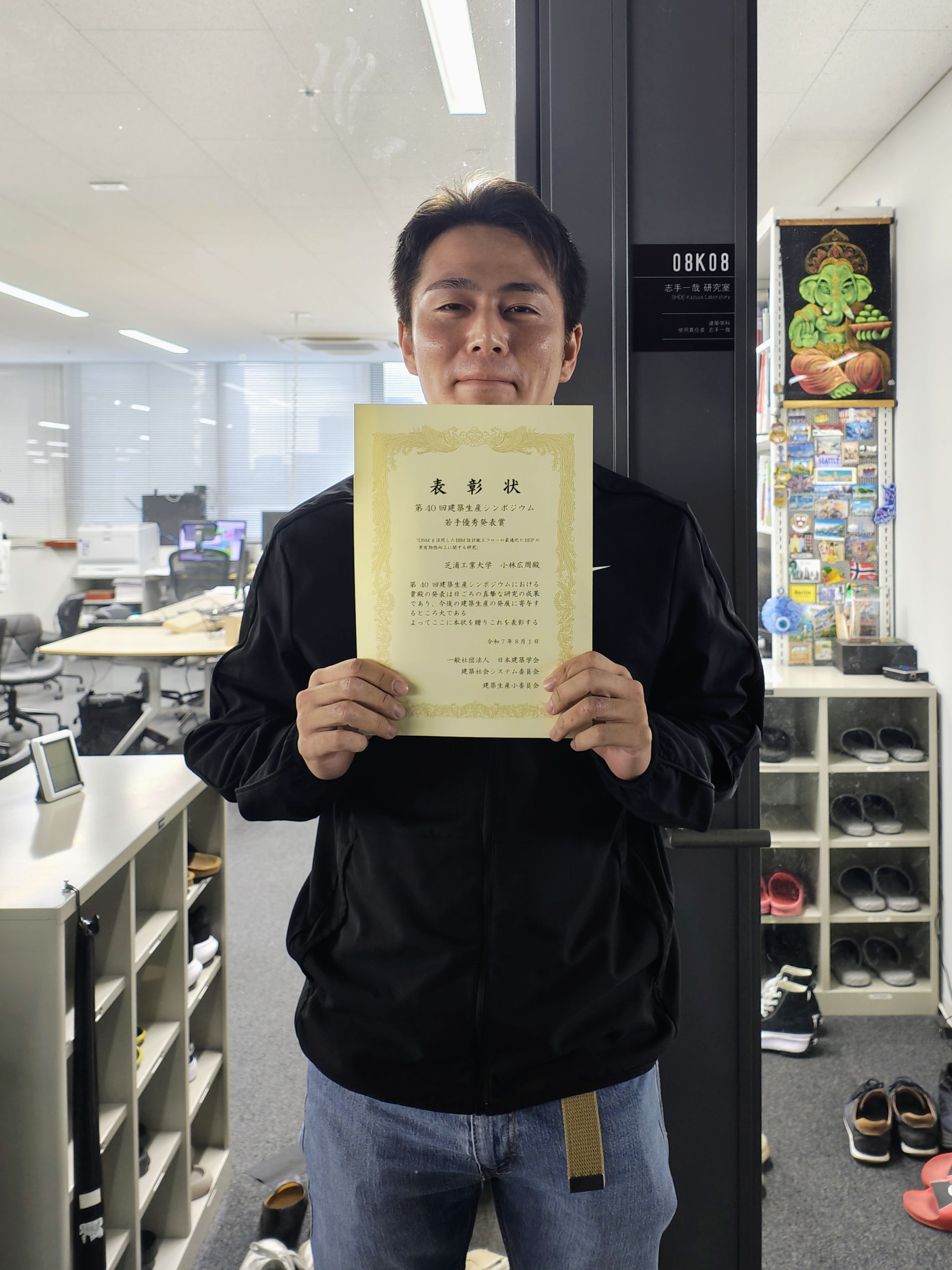 2025年7月31日・8月1日に建築会館で行われた、第40回建築生産シンポジウムにおいて、修士2年の小林広周君が若手優秀発表賞を受賞しました。