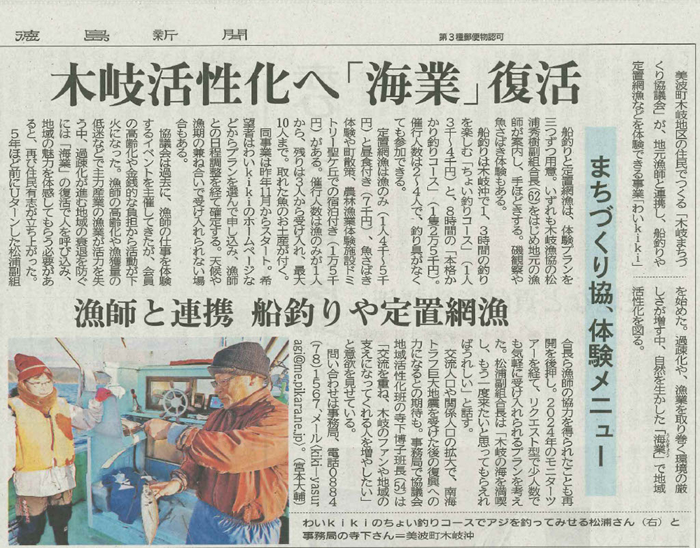 2026/02/05 研究室が支援する活動が新聞記事に紹介されました 徳島県美波町木岐地区において事前復興まちづくりの一環として取り組んでいる海業推進の取り組みが徳島新聞に紹介されました。 木岐活性化へ「海業」復活 2026年2月3日 徳島新聞
