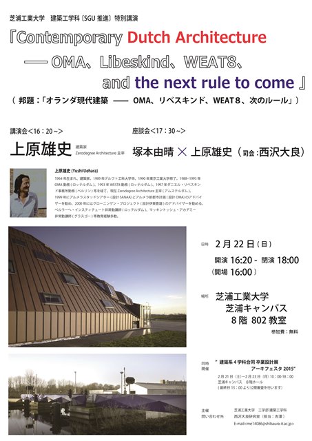講演名:『Contemporary Dutch Architecture――OMA、Libeskind、WEAT8、and the next rule to come 』