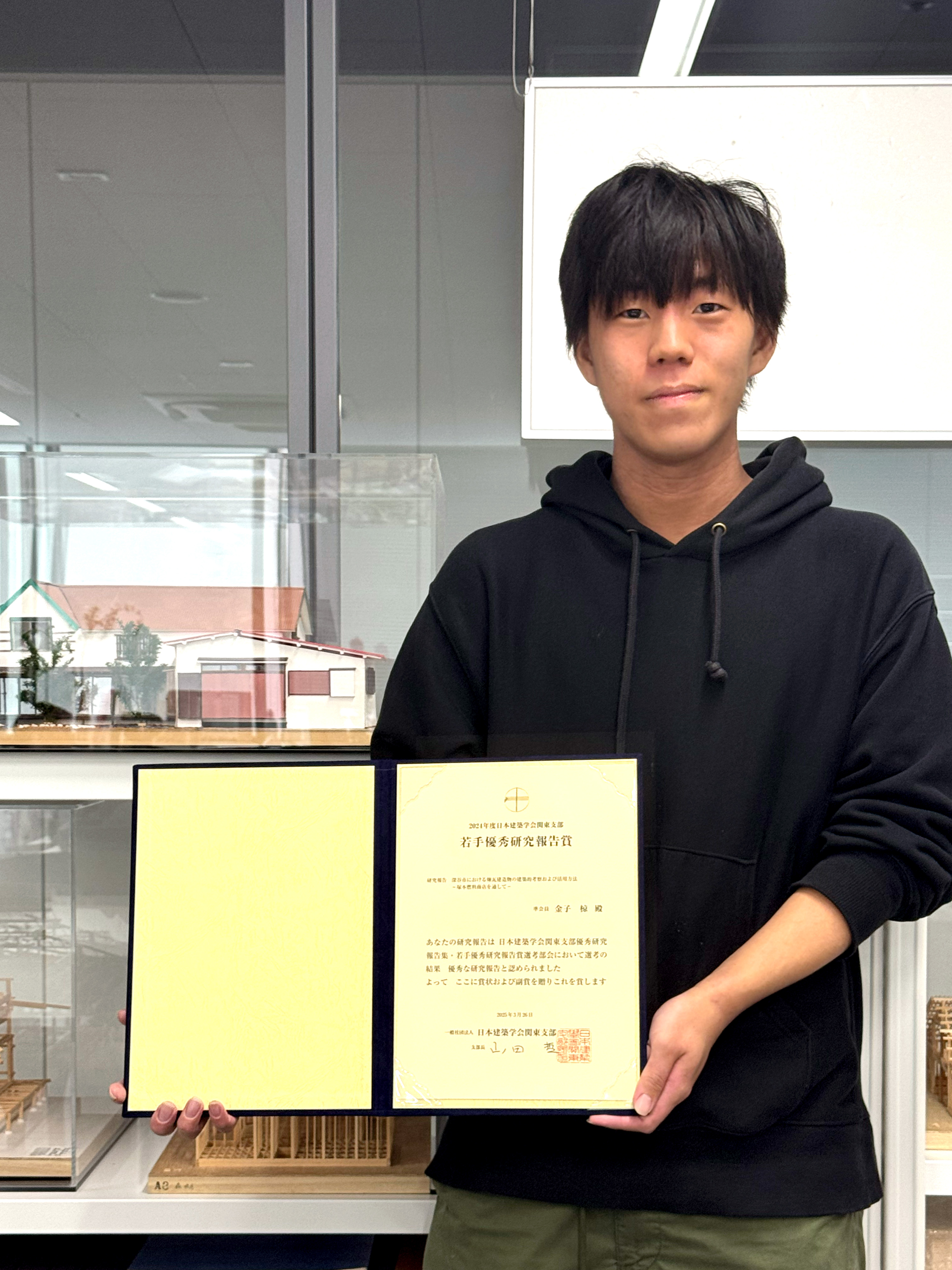 【受賞】金子 椋さんが日本建築学会関東支部研究発表会 優秀研究報告集・若手優秀研究報告賞を受賞